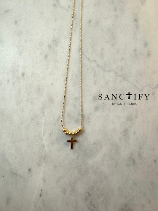 Gold Cross Beaded Necklace